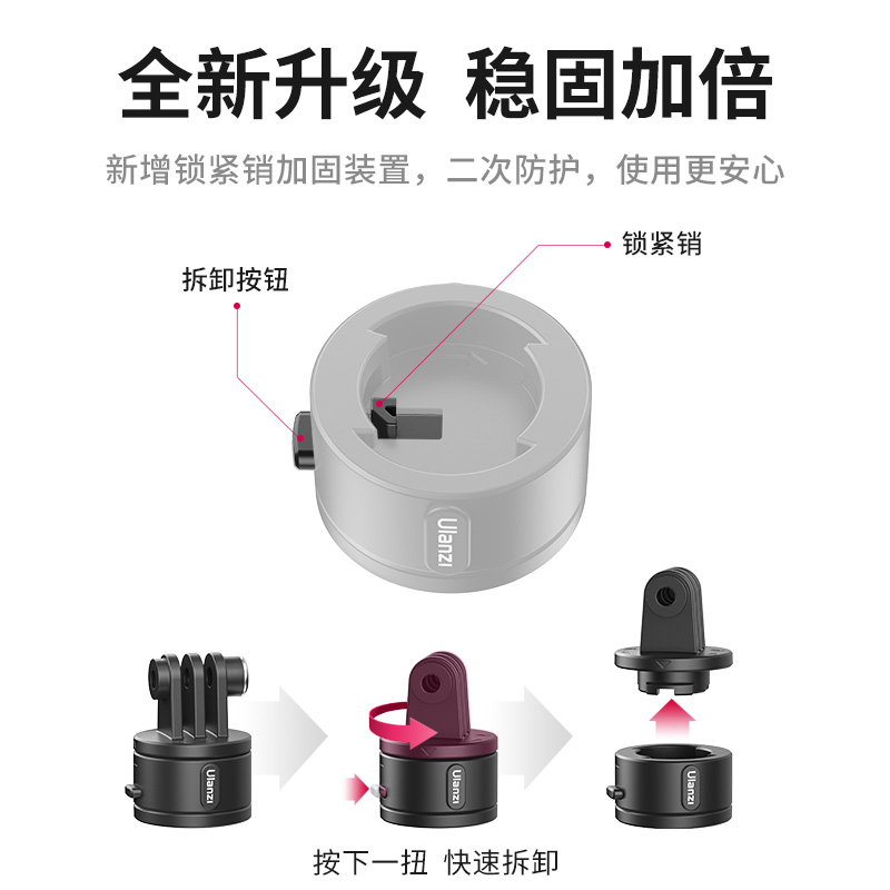 4快装 优篮子运动相机磁吸快拆云台肩带背包夹头戴自行车骑行快装 11大疆Action5 配件 板转接头适用GoPro13