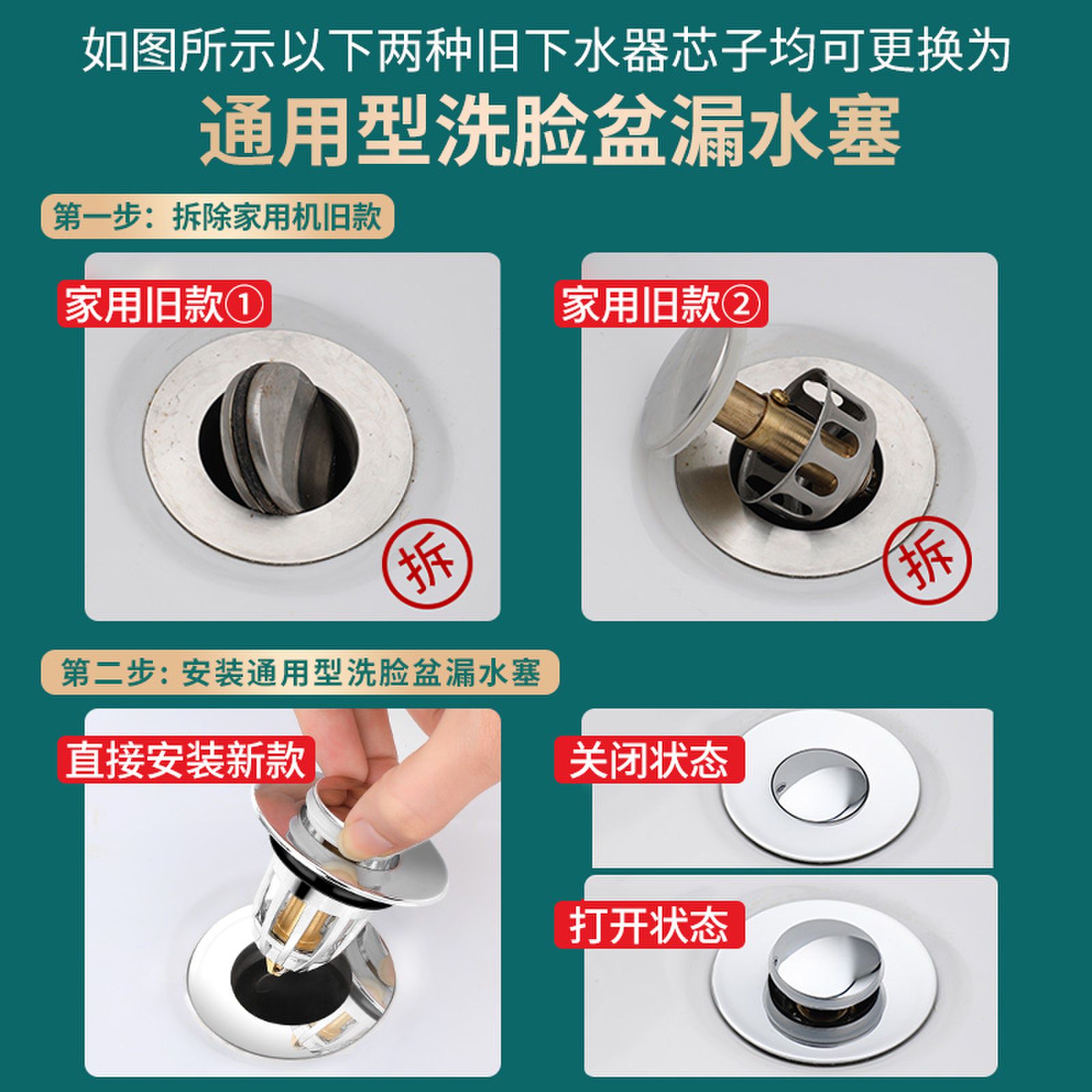 优勤洗手盆脸池漏水塞子弹跳芯洗脸盆不锈钢按压式 防臭塞配件