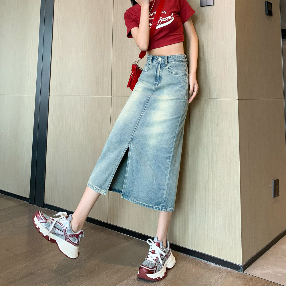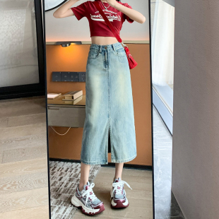 女装 新款 百搭直筒显瘦中长裙 纹半身裙2025年秋装 秋水伊人学院风格