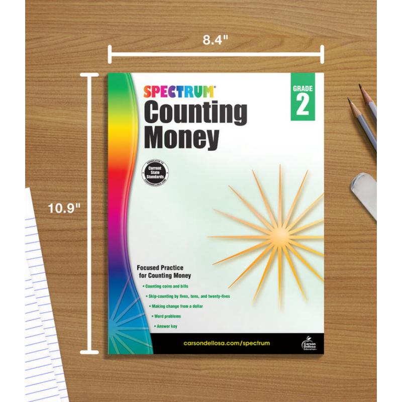 Dellosa 大音 Counting 2英文原版 进口 Grade 二年级Spectrum Money Education 光谱练习册 小学教辅参考书Carson 数钱