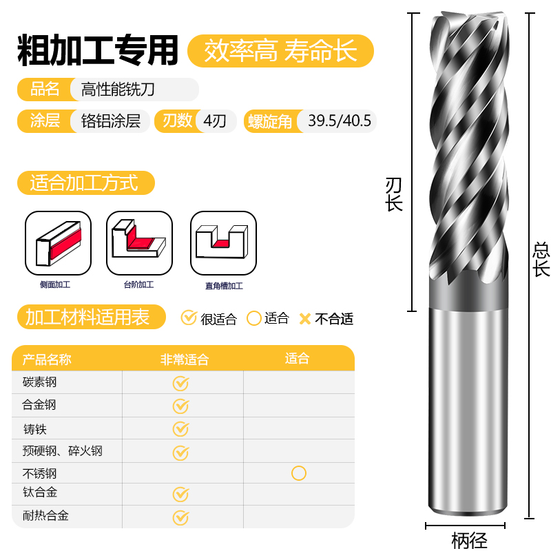 高性能超硬钨钢铣刀4刃硬质合金洗刀不锈钢立铣刀70度cnc数控刀具