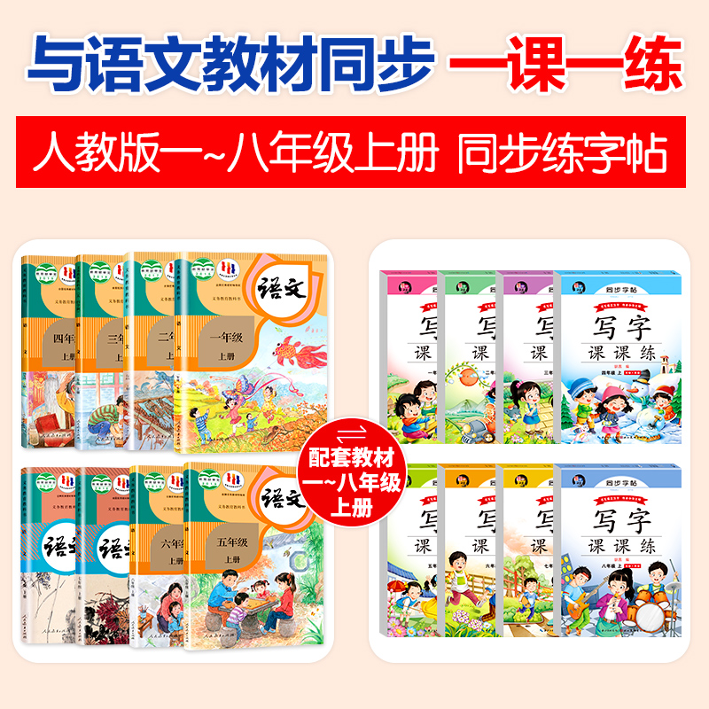 小学语文同步字帖写字课课练一二三四五六七八上册下册统编人教版 蒙纸字帖语文课本同步练字帖中小学生规范字体每日一课一练字帖