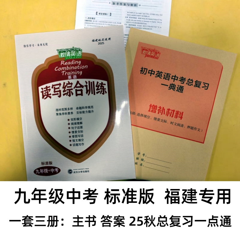 2025福建专版 中七八九年级中考英语阅读理解句子短文完型填空看图写话写作训练情景交际专项语法专项 激情英语读写综合训练标准初版