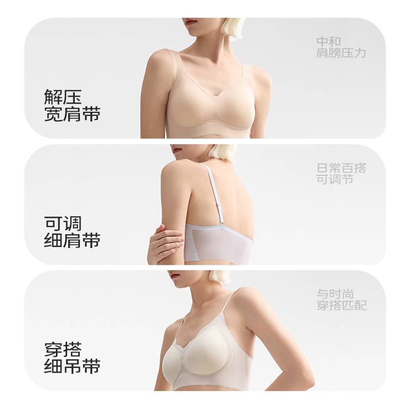 小胸聚拢文胸 凉感细肩带美背一体式 舒氧冰丝无痕内衣女超薄款 夏季