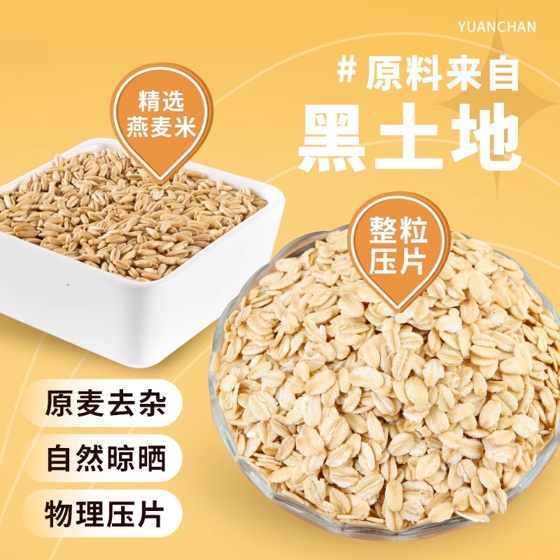 燕麦片生需煮纯麦片袋装 粗粮早餐纯燕麦煮粥 非即食原味生燕麦散装