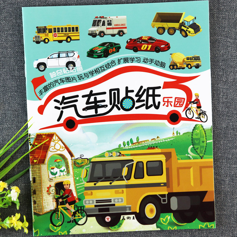 汽车贴纸大全儿童动手动脑粘贴画新蒙氏幼儿益智专注力训练嘉淇文化幼儿启蒙认知小百科全书3 6岁宝宝识车大全小小车迷贴纸画本