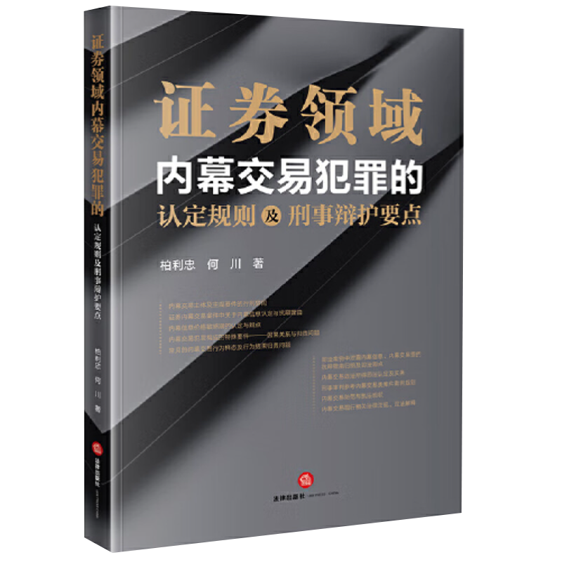 柏利忠 认定规则及刑事辩护要点 何川 证券交易刑事犯罪辩护实务 社9787519788575 2024新书 法律出版 证券领域内幕交易犯罪