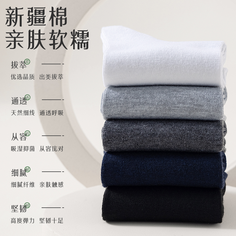 棉伙棉伴海藻袜舒适抗菌防臭男女商务运动纯色裸感中筒袜