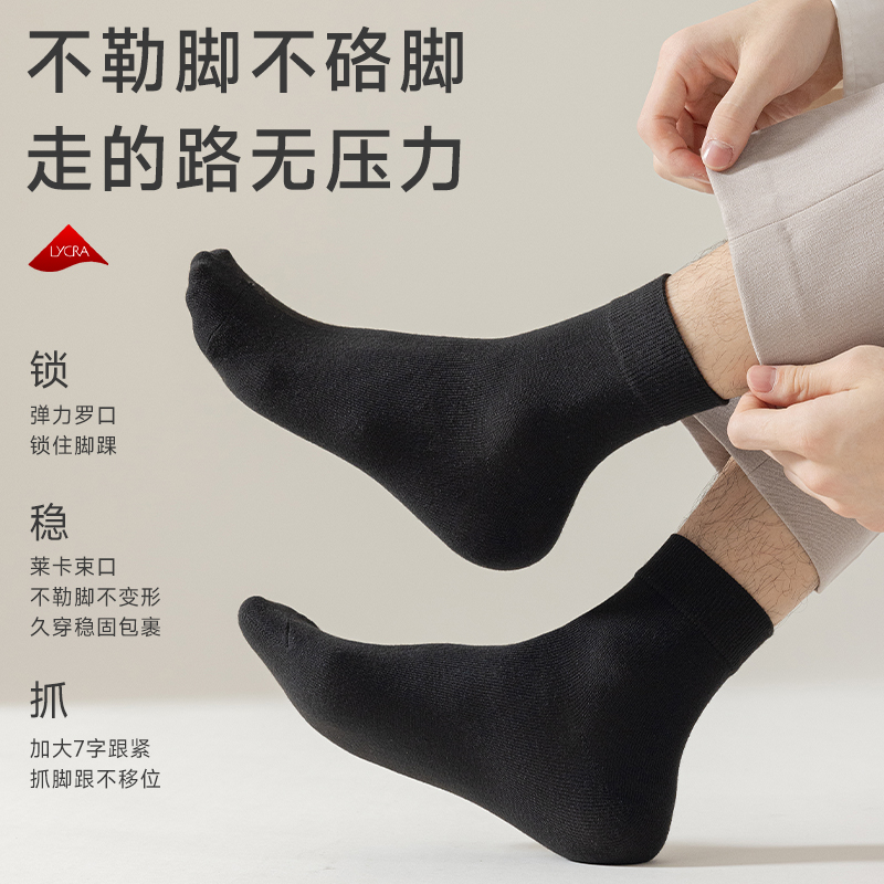 花花公子男士 纯棉防臭7a抗菌中筒袜全棉吸汗透气商务男袜 袜子男款