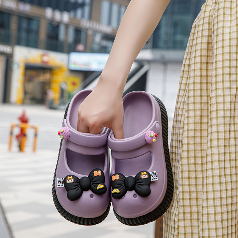 网红卡通 防臭拖鞋 踩屎感洞洞鞋 女夏外穿防滑软底包头沙滩厚底新款