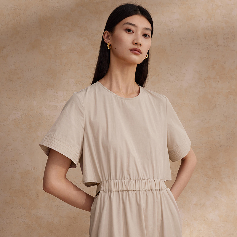 播气质连衣裙女商场同款 裙子夏BDR2LD1693 腰部镂空设计感中长款
