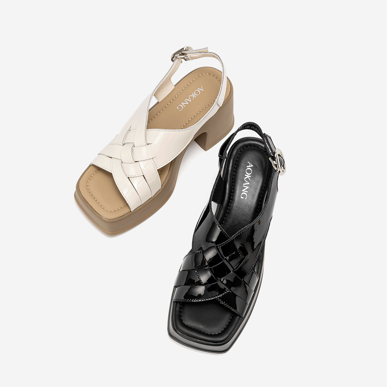 法式 编织时尚 鱼嘴凉鞋 奥康女鞋 女凉鞋 新款 复古百搭时装 夏季