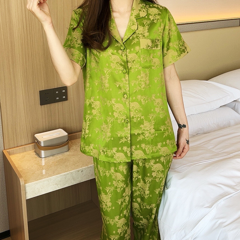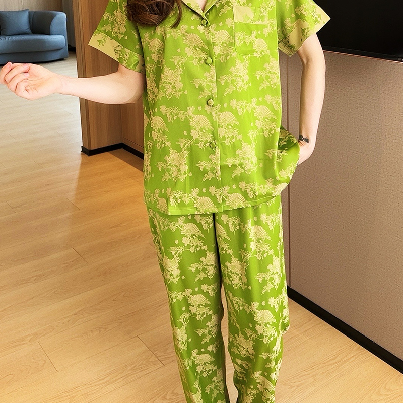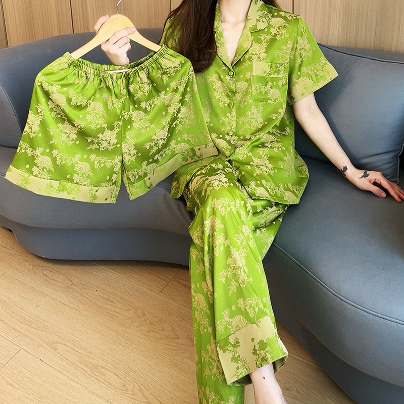 家居服高级感可外穿印花春秋新款 长裤 三件套 冰丝薄短袖 睡衣女夏季