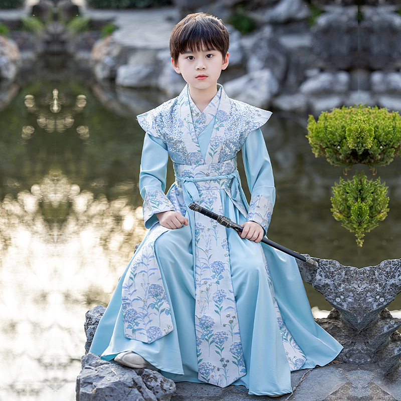 男孩演出服 中国风帅气书生国学古装 汉服男童2025秋冬短袖 儿童唐装