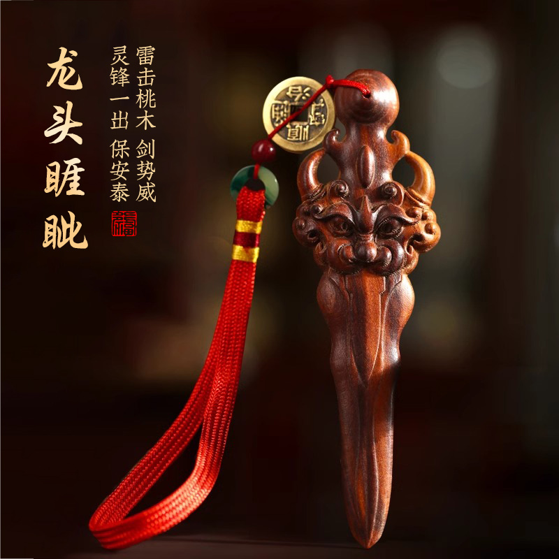 天然雷击桃木剑紫微讳剑挂件宝剑雷击木手把件宝宝随身汽车挂饰品