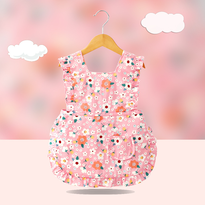 婧麒宝宝罩衣纯棉防水防脏公主裙夏季 吃饭围兜围裙幼儿园护衣口水