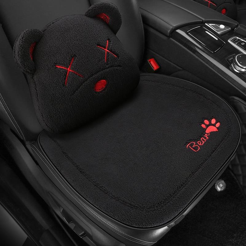 冬季 卡通座垫加厚防滑 毛绒汽车坐垫短三件套通用单片主驾驶新款