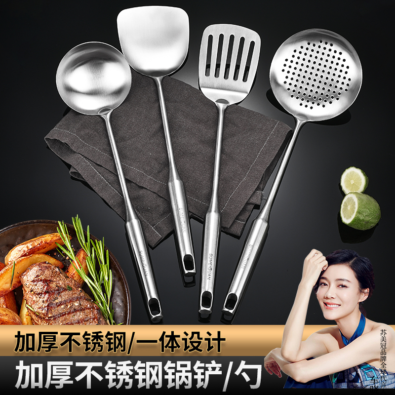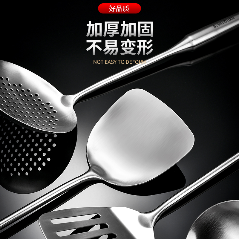 苏美冠加厚不锈钢锅铲勺家用漏勺舀汤盛汤勺子厨师炒勺炒菜铲子