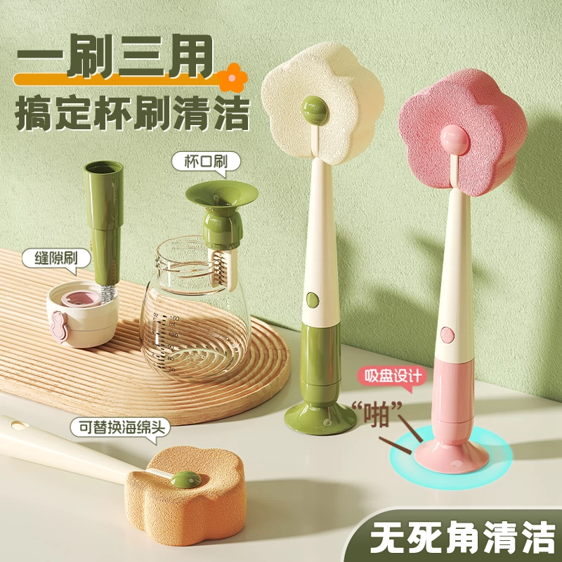 吸盘杯刷新款 加长刷子水杯长柄专用神器三合一多功能奶瓶刷清洁刷