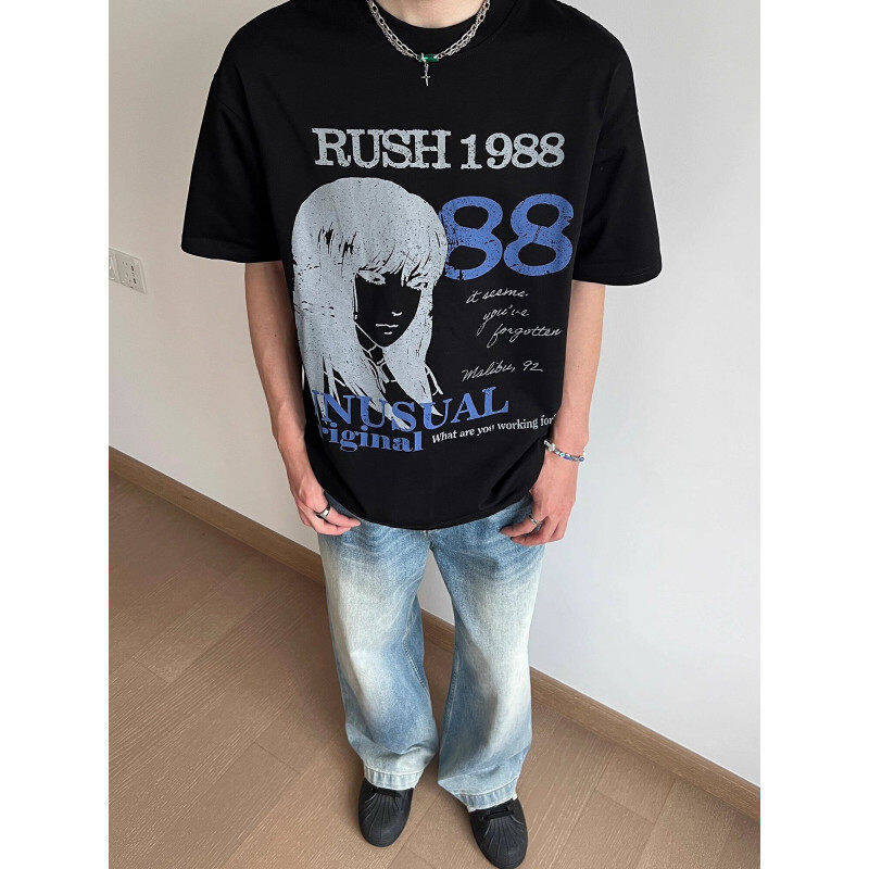 重磅纯棉T恤cleanfit五分半袖 美式 夏季 男款 高街vibe涩谷女孩短袖
