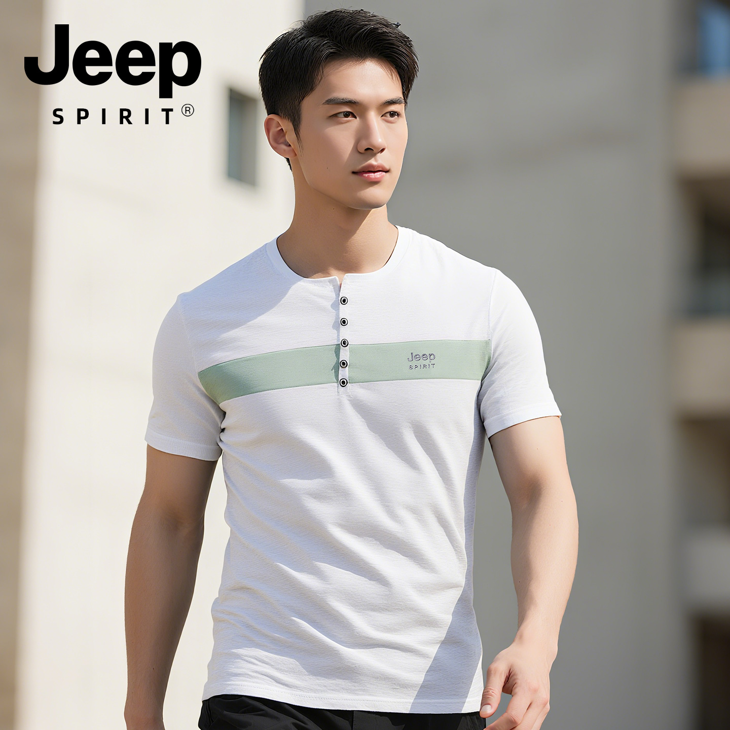 SPIRIT商务休闲亨利领短袖 上衣正品 T恤男生夏季 透气修身 薄款 JEEP