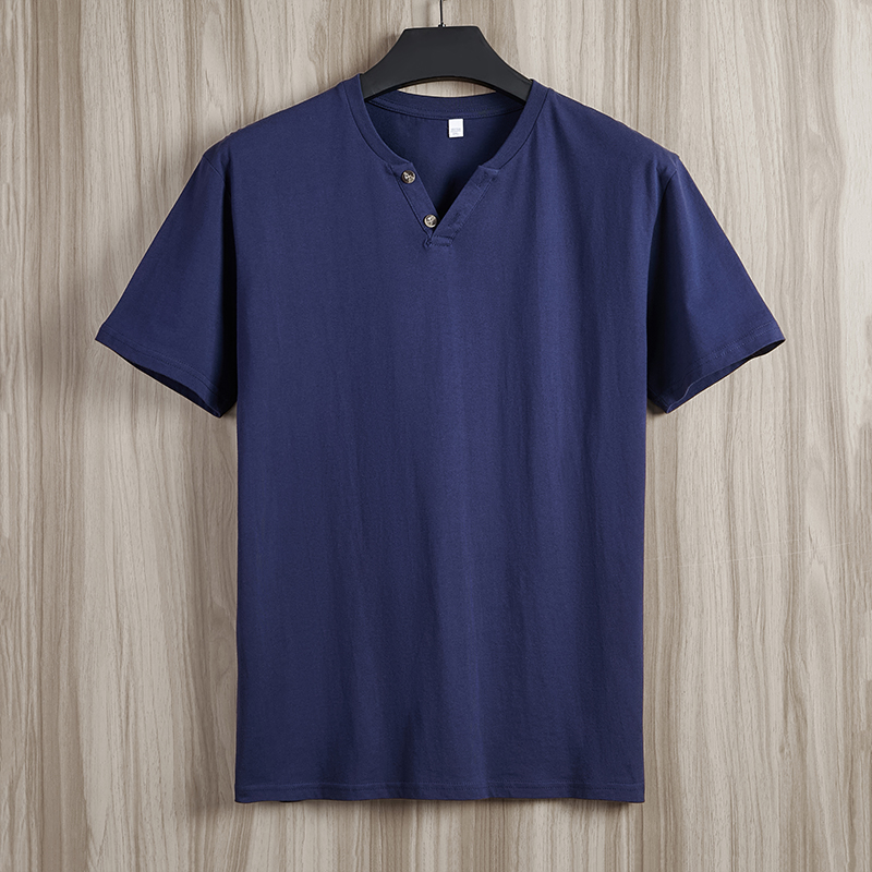 短袖 潮流扣子男士 T恤男装 纯棉半袖 2025夏季 V领体恤衣服打底衫 美式