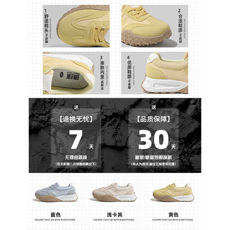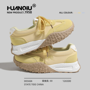 女2025新款 子运动休闲板鞋 秋季 百搭阿甘鞋 爆款 拉夏贝尔黄色德训鞋