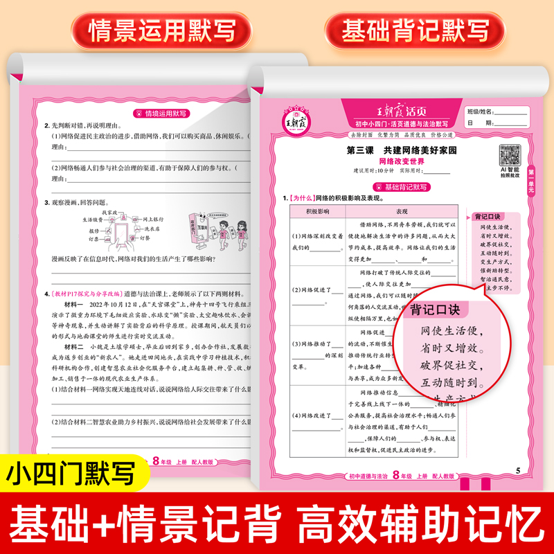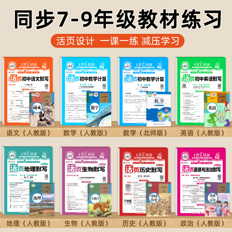 2025新王朝霞初中七八九年级活页默写活页计算语文数学英语政治史历史地理生物同步训练一课一练小四门人教版 初一初二练习册 北师版