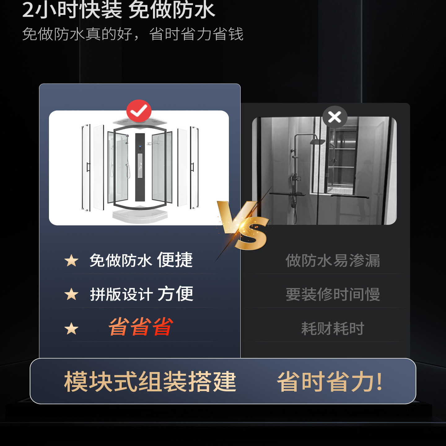 整体淋浴房一体式 家用浴室玻璃隔断卫浴洗澡间卫生间弧扇形沐浴房