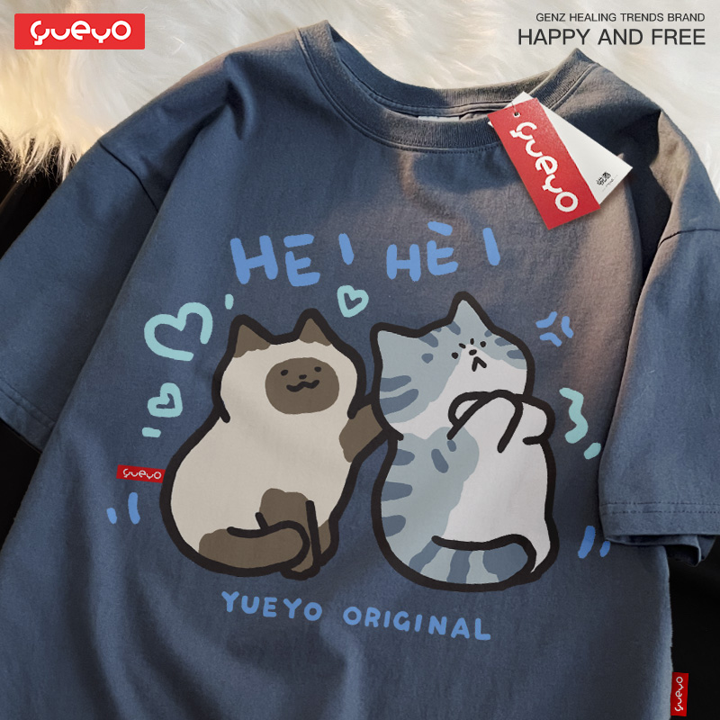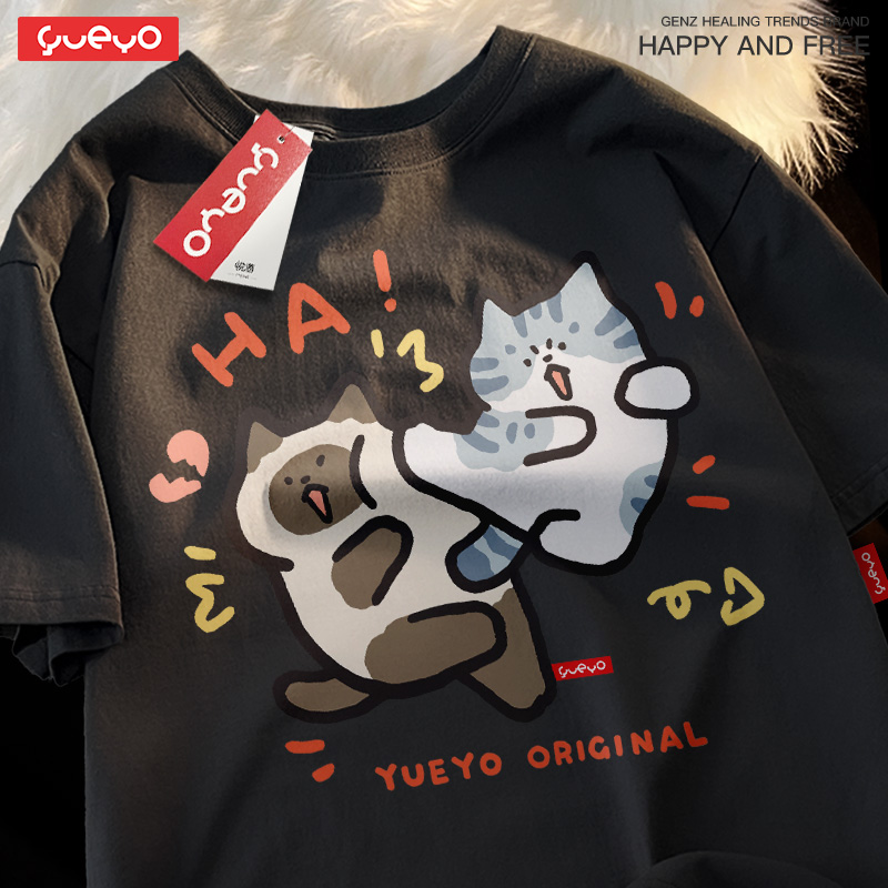 T恤原创潮流可爱情侣装 悦游 棉宽松情侣短袖 2025夏季 生气情侣猫