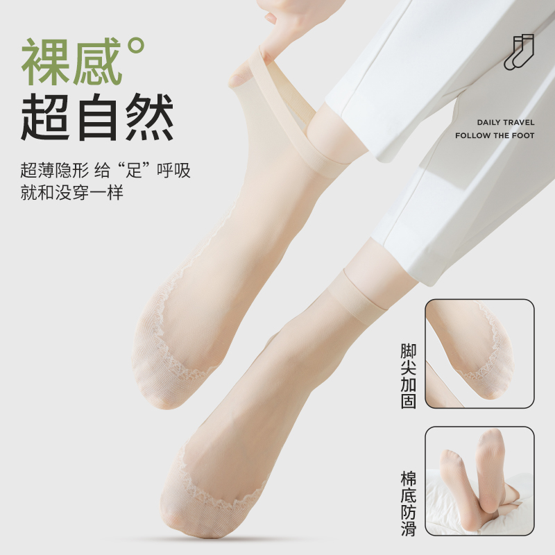 短丝袜女士袜子夏季 防勾丝肉色短钢丝袜耐磨短袜面膜超薄肤色 薄款