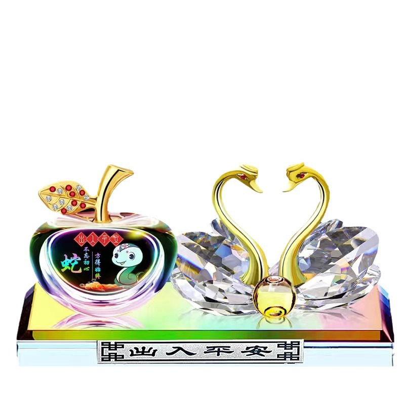 2024龙年生肖汽车摆件水晶天鹅香水座女士车载中控台装 饰高档创意