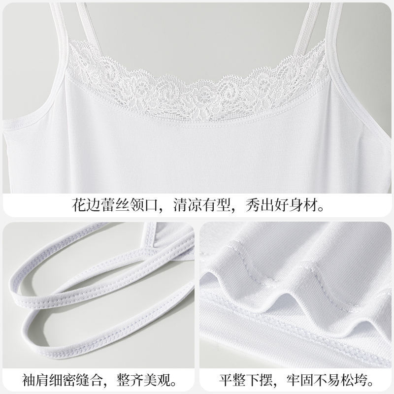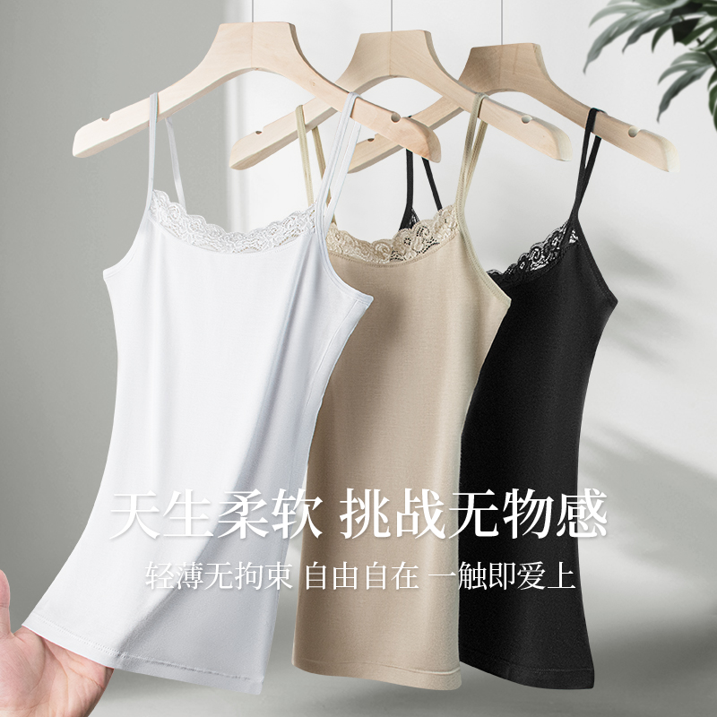 薄 打底衫 浪莎莫代尔小吊带背心女士上衣无袖 内搭黑白蕾丝秋冬季
