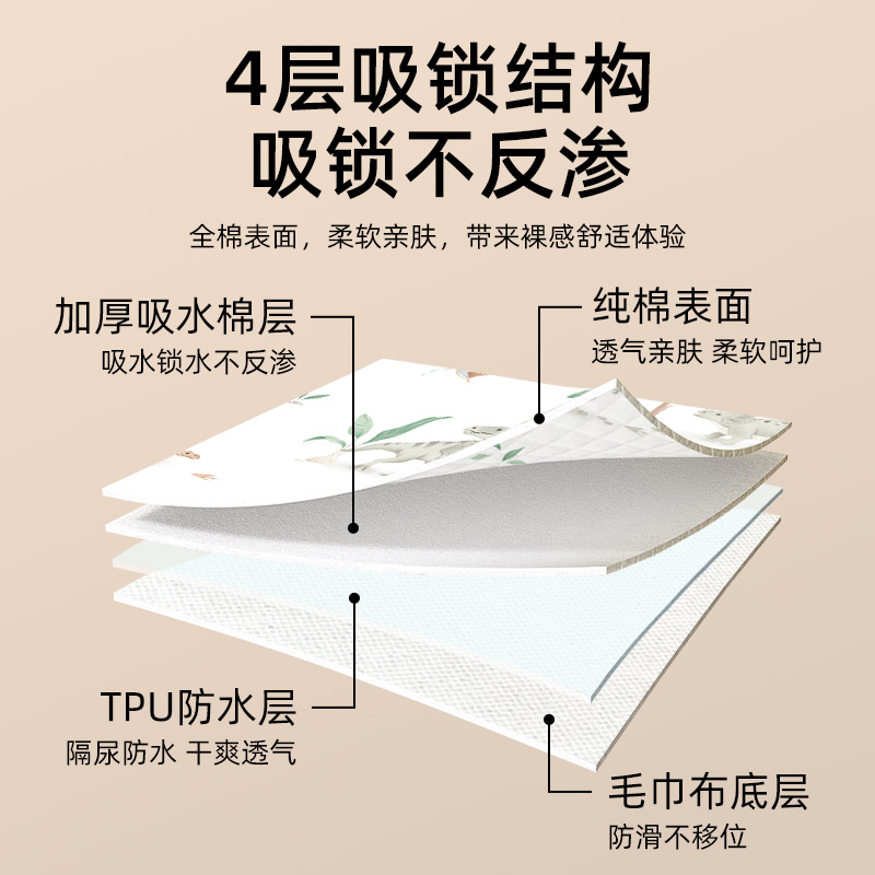 婧麒隔尿垫婴儿防水可水洗大尺寸纯棉透气新生儿童宝宝幼儿园床单