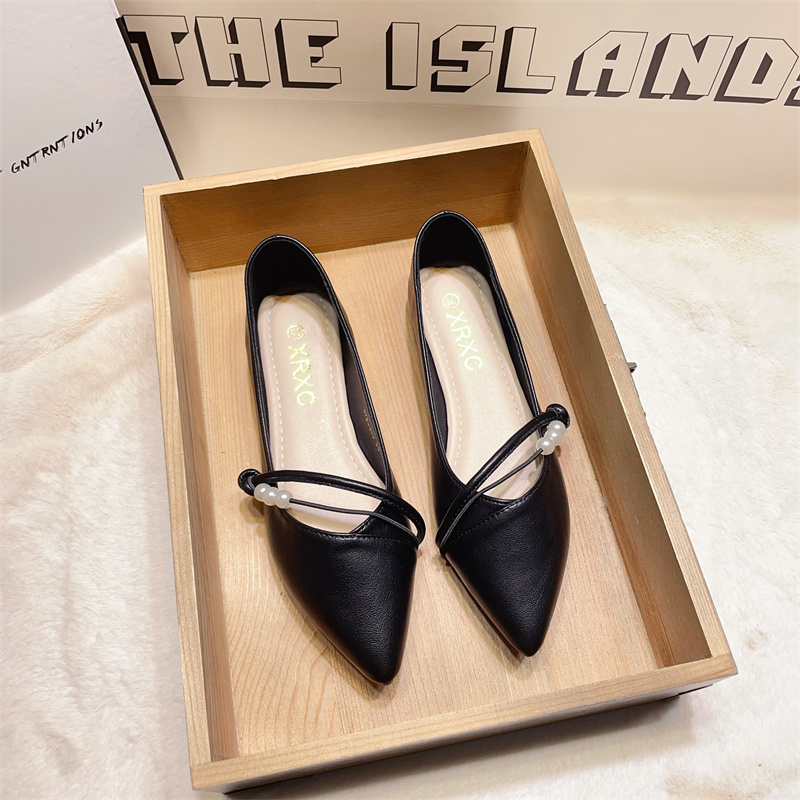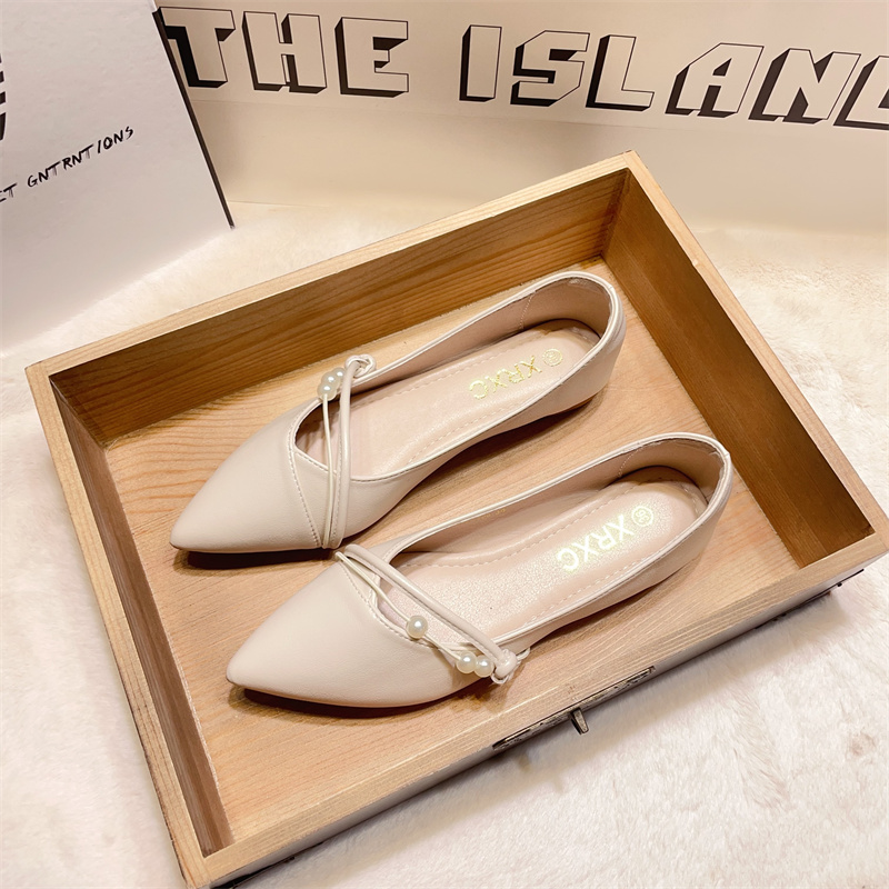 2025新款 法式 温柔鞋 子女舒适春秋款 珍珠尖头单鞋 浅口女鞋 女平底鞋