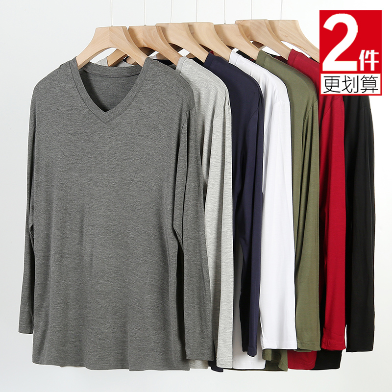 内衣打底汗衫 莫代尔长袖 宽松上衣大码 薄款 T恤男V领加肥加大春秋季