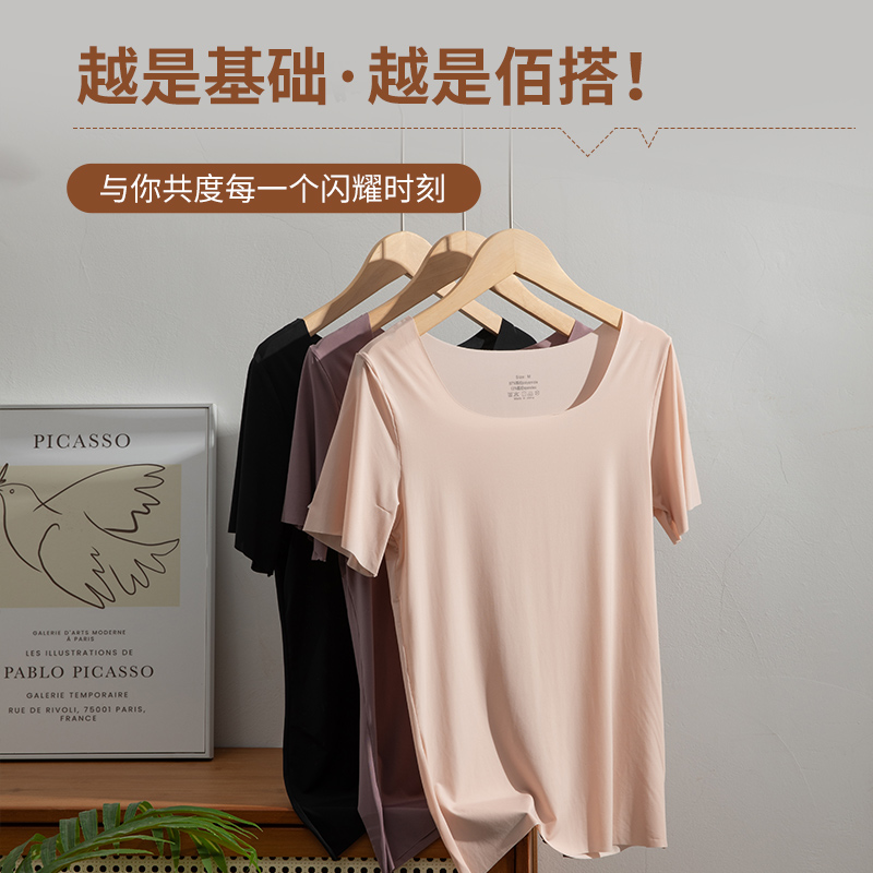修身 打底衫 百搭上衣服 T恤女春秋内搭短款 设计感小众正肩纯棉长袖