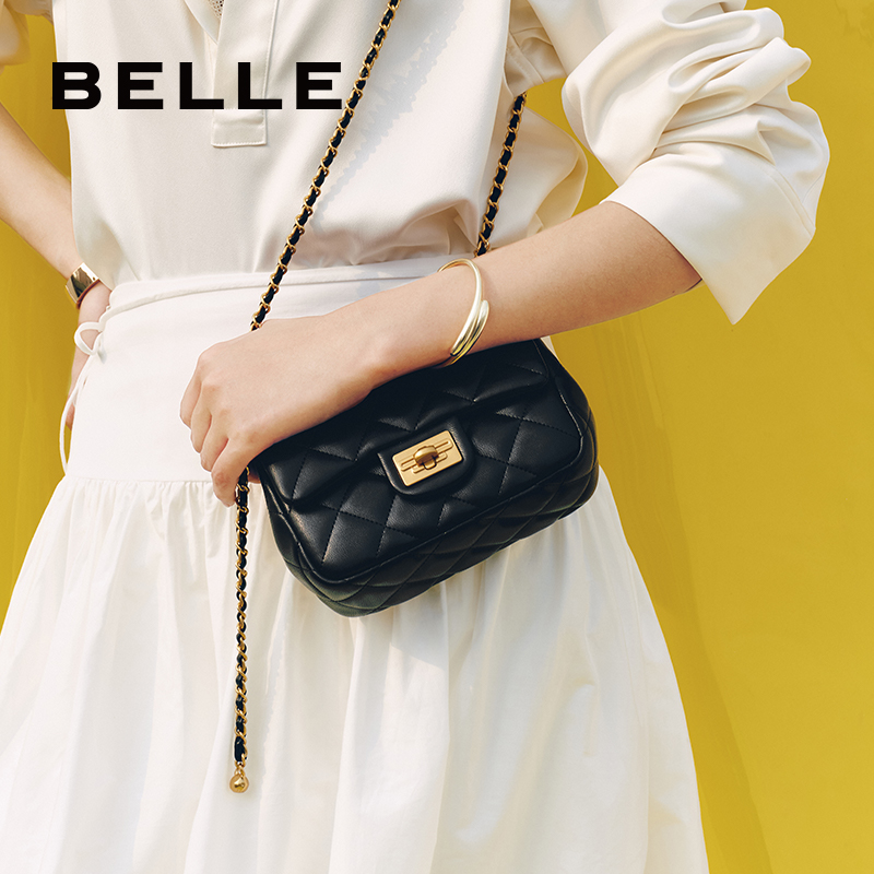 百丽包包女新时尚 百搭高级感小香风链条包菱格斜挎单肩包X6972BX4