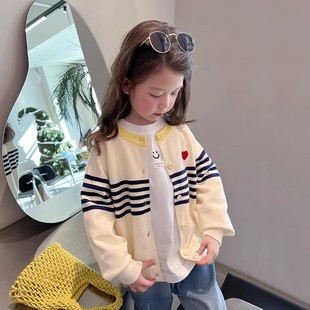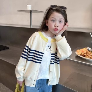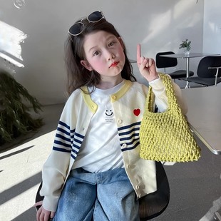 上衣2025春秋新款 小女孩开衫 女童白毛衣儿童洋气外套中大童装