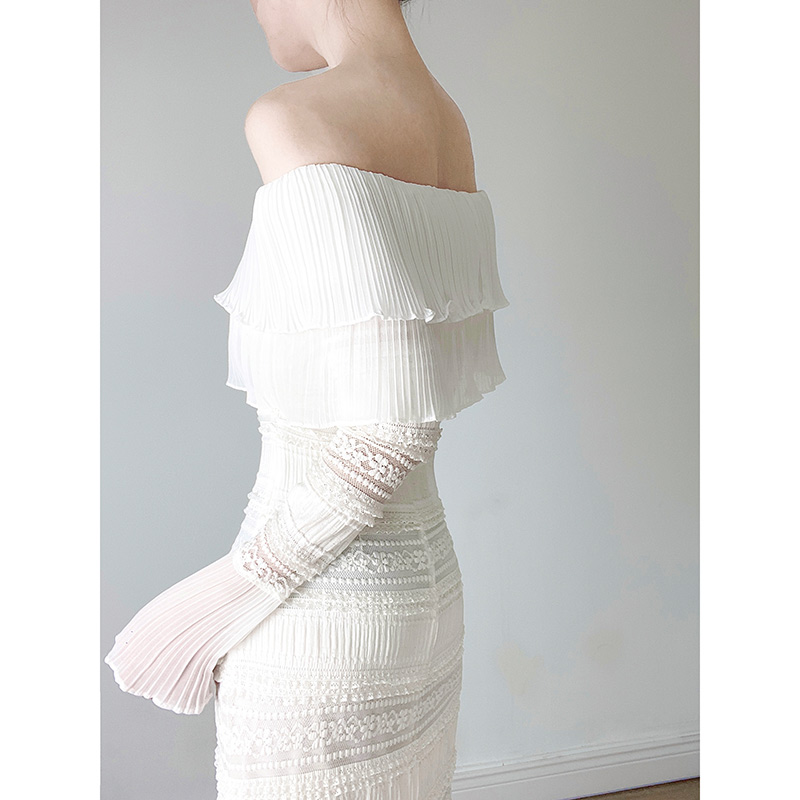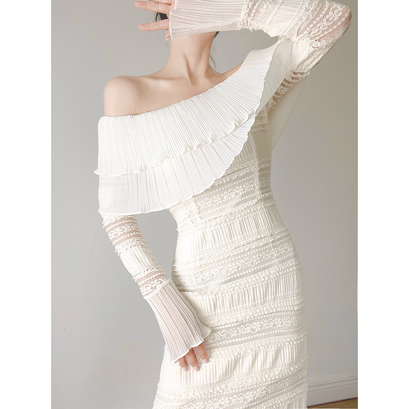 乐町假两件针织撞色长裙女装 直筒宽松长裙镂空蕾丝小标连衣裙 冬季