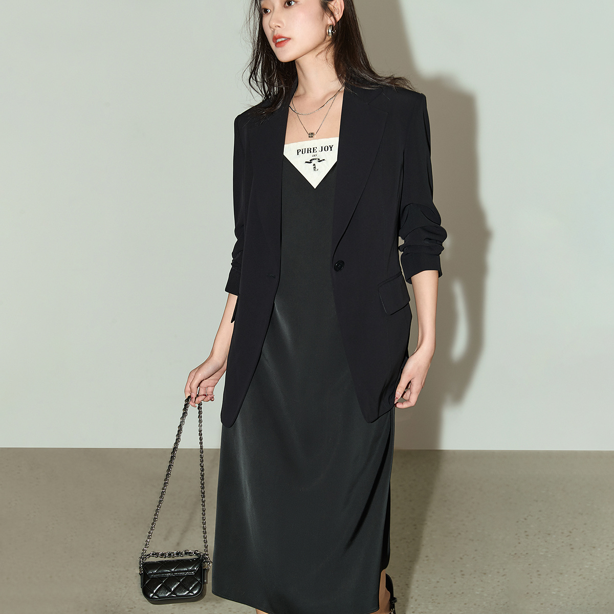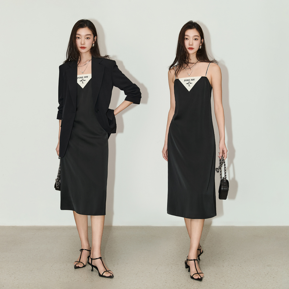 优雅假两件吊带裙小黑裙 设计感复古气质通勤款 LILY奥莱夏款 女装