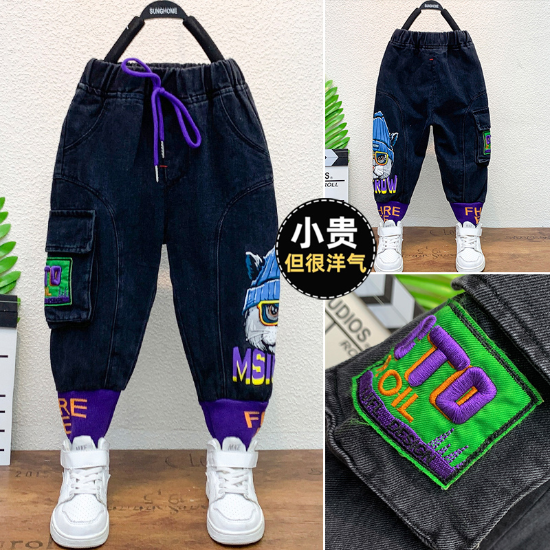 直筒长裤 小黄鸭男童春秋牛仔裤 子男孩春装 中大童洋气裤 潮 2025新款