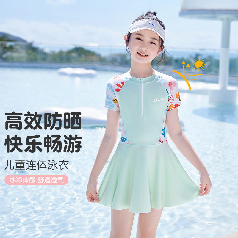 回力儿童泳衣女孩连体2025新款 中大童宝宝防晒专业女童游泳衣 夏季