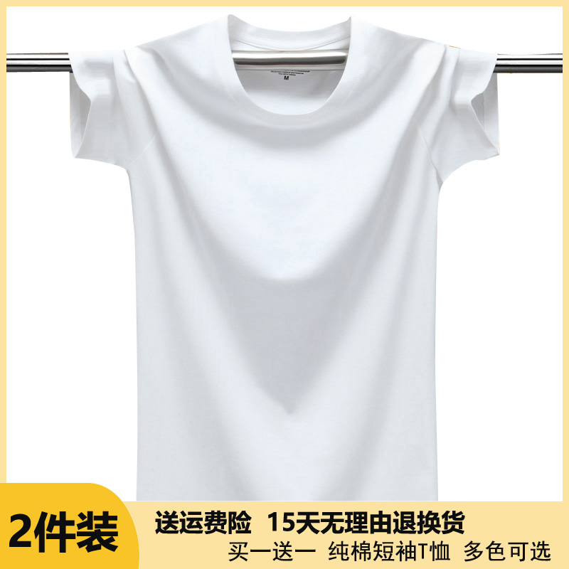 短袖 潮流男女装 t恤男夏季 汗衫 上衣黄色 纯色纯棉运动体恤半袖 2件装