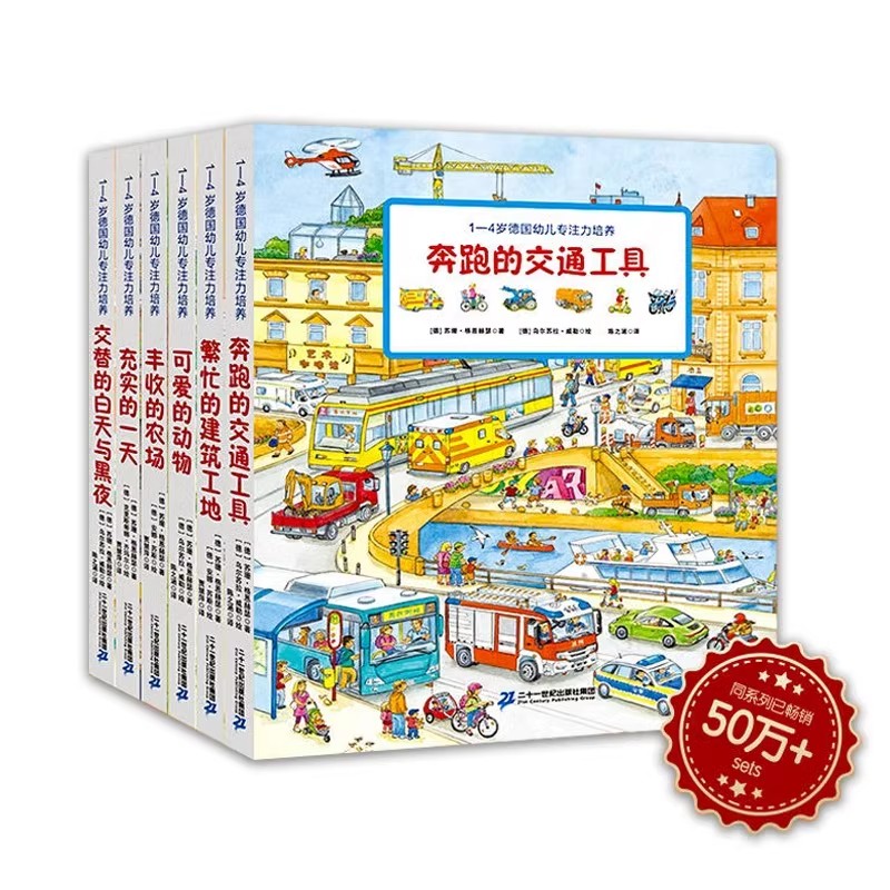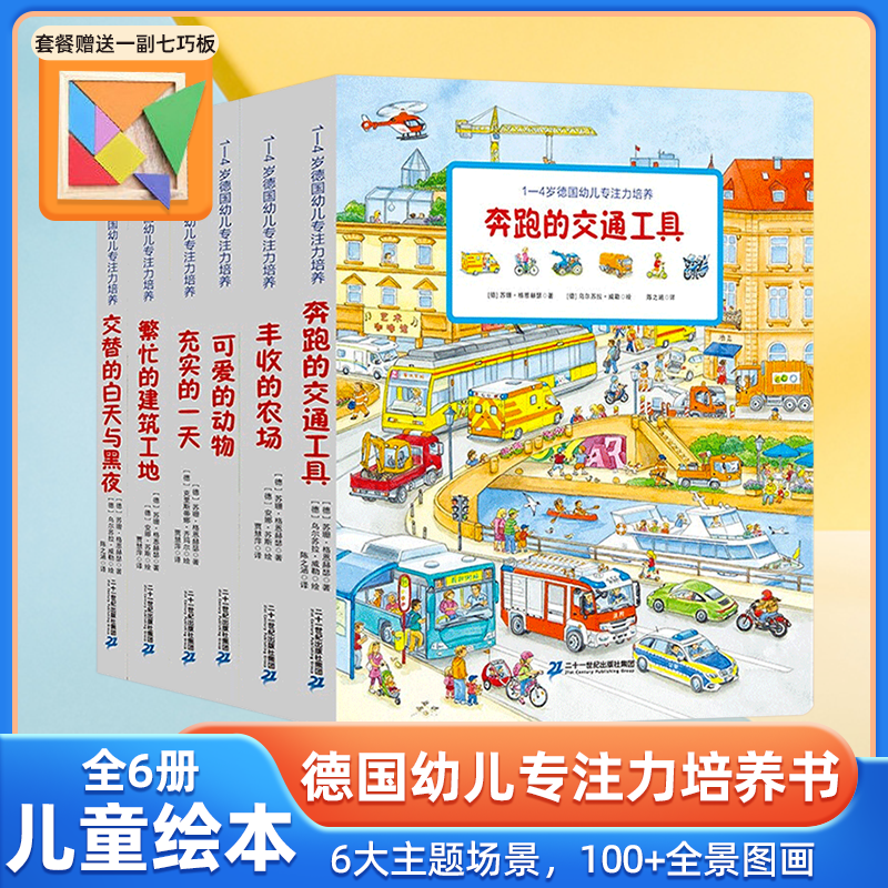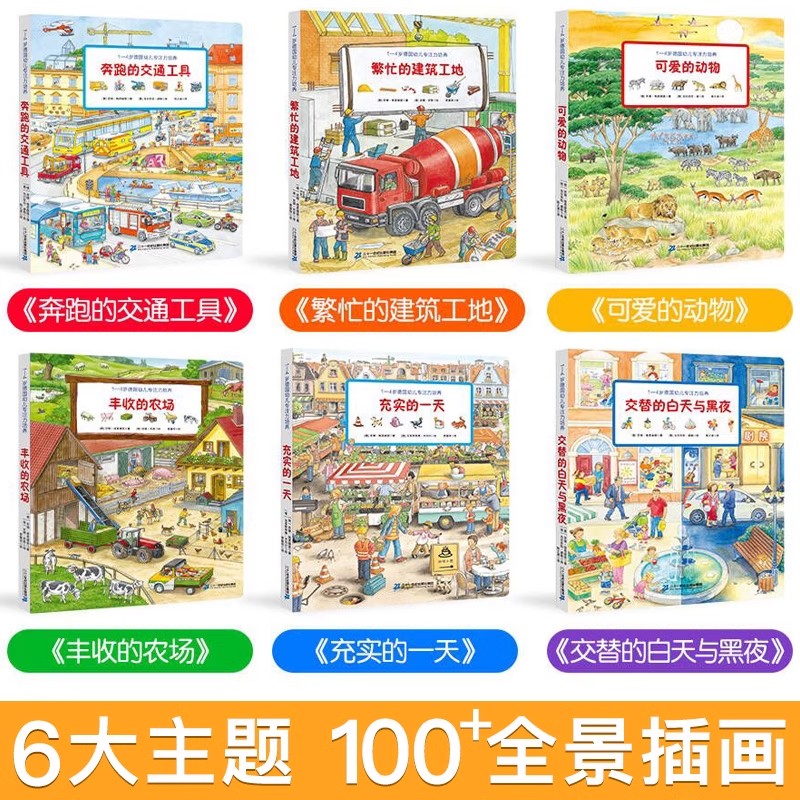 建筑工地可爱 动物丰收 农场充实 德国幼儿专注力培养点读版 白天与黑夜1 交通工具繁忙 一天交替 4岁绘本儿童启蒙 全6册奔跑