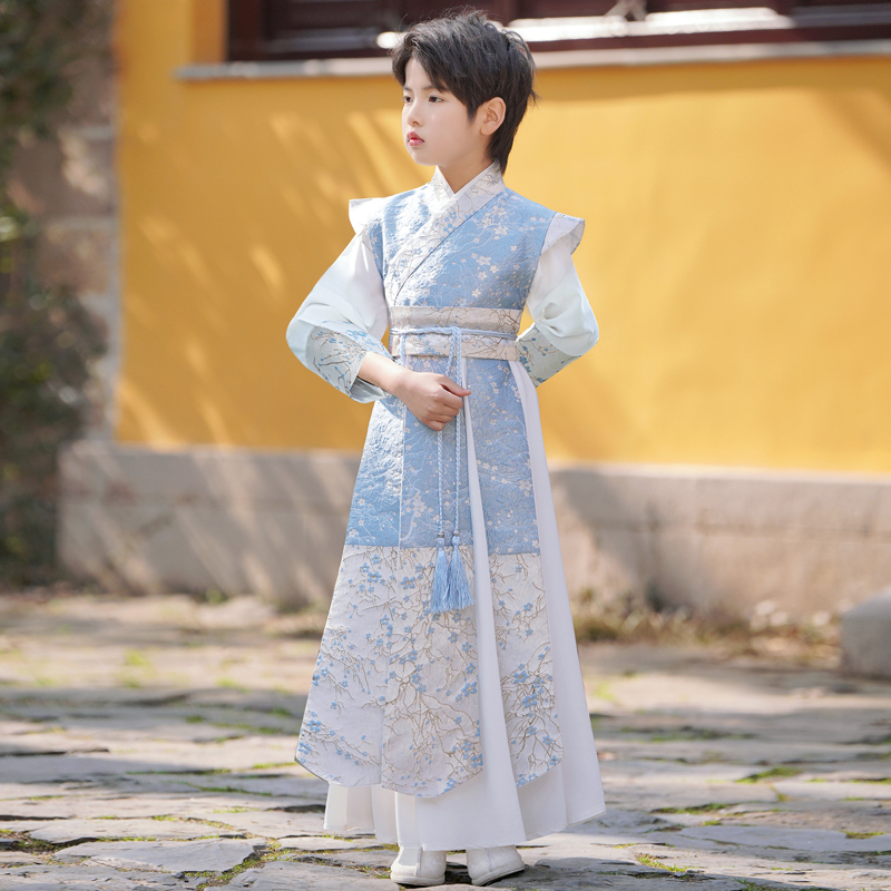 短袖 男童汉服2025新款 演出服春秋季 儿童演出国风唐装 古风男孩古装