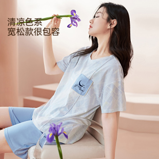 薄款 纯棉睡衣女夏季 可外穿大码 短袖 女家居服 玛伦萨 套装 5A抗菌