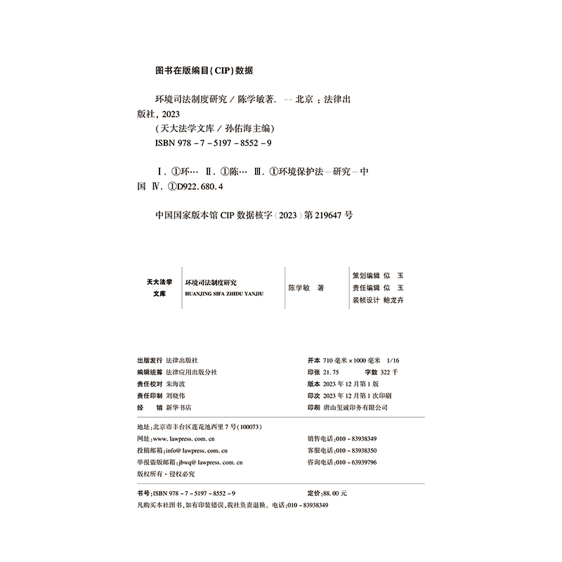 陈学敏著 天大法学文库 追寻中国环境司法成长足迹 正版 法律出版 环境司法制度研究 推进中国环境司法制度完善 社 2023新书