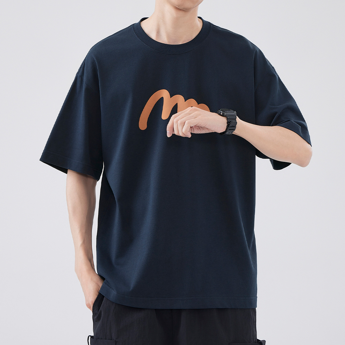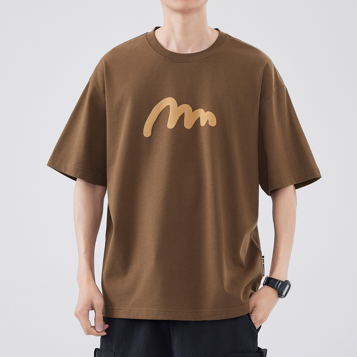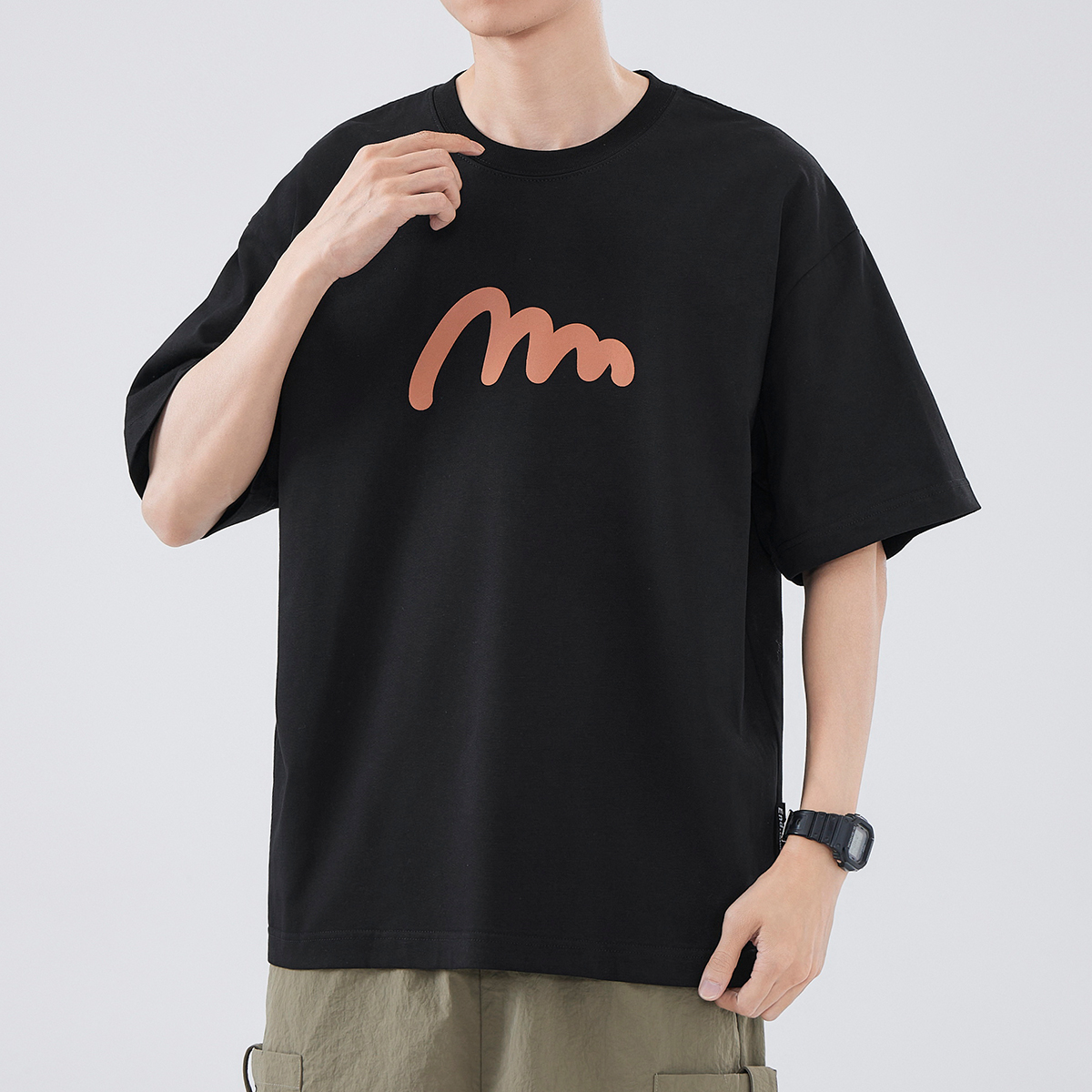新款 t恤男夏季 印花水洗宽松落肩休闲体恤 简约高级圆领短袖 hansca