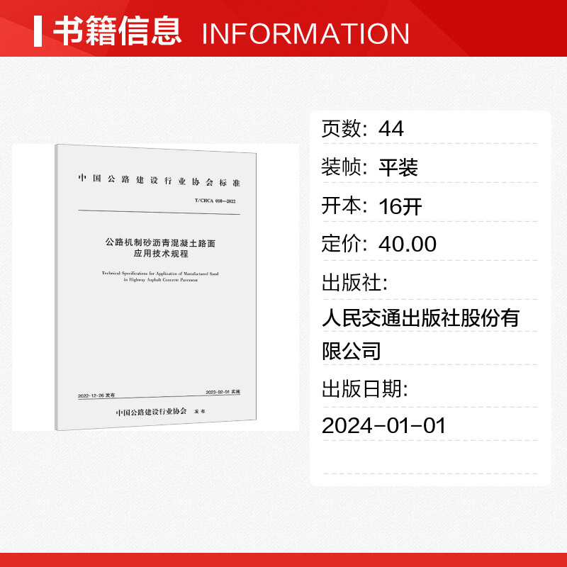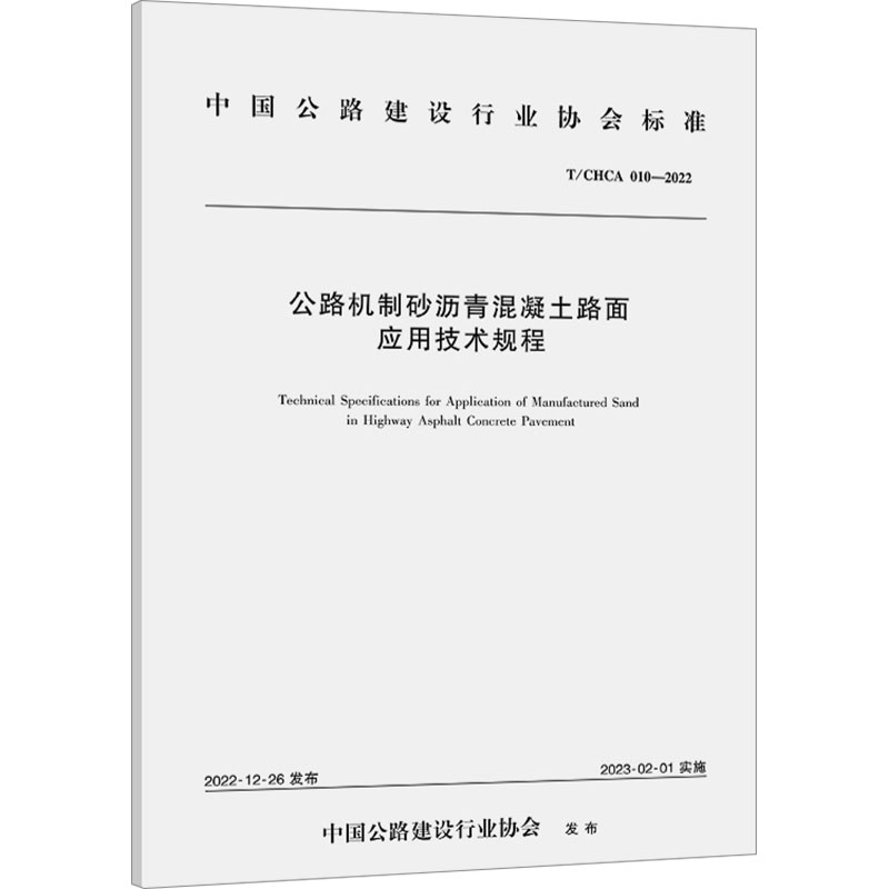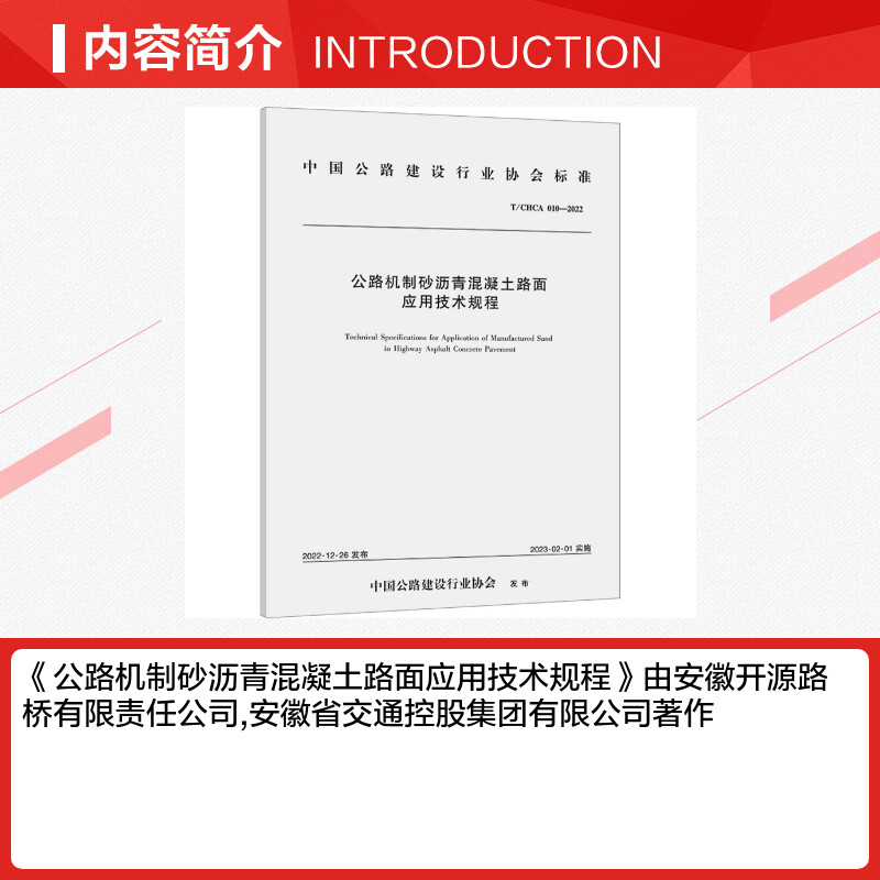 010 CHCA 2022 安徽开源路桥有限责任公司 著 公路机制砂沥青混凝土路面应用技术规程 安徽省交通控股集团有限公司